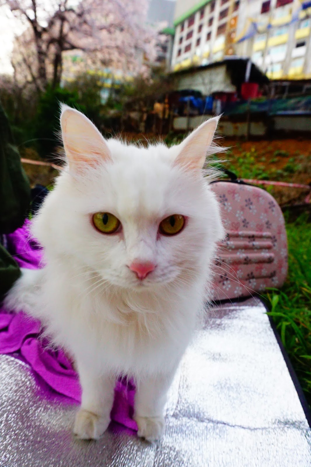 This scene really got me, because when everyone take selfie and couple showing their PDA act, this girl have the best way to enjoy cherry blossom blooming. She just sit there quietly with her 2 cats as her company, drawing some cherry blossom flowers.
